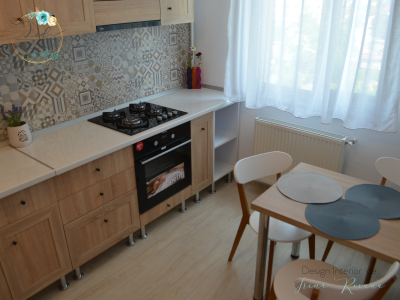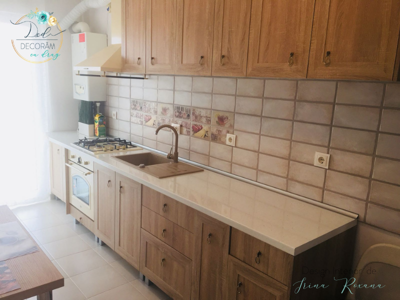 Haideti sa vedeti cum am refolosit o bucatarie montata de 1 an intr-un anumit spatiu, in alt apartament, aducand doar 2 corpuri in completare si schimband electrocasnicele si manerele.